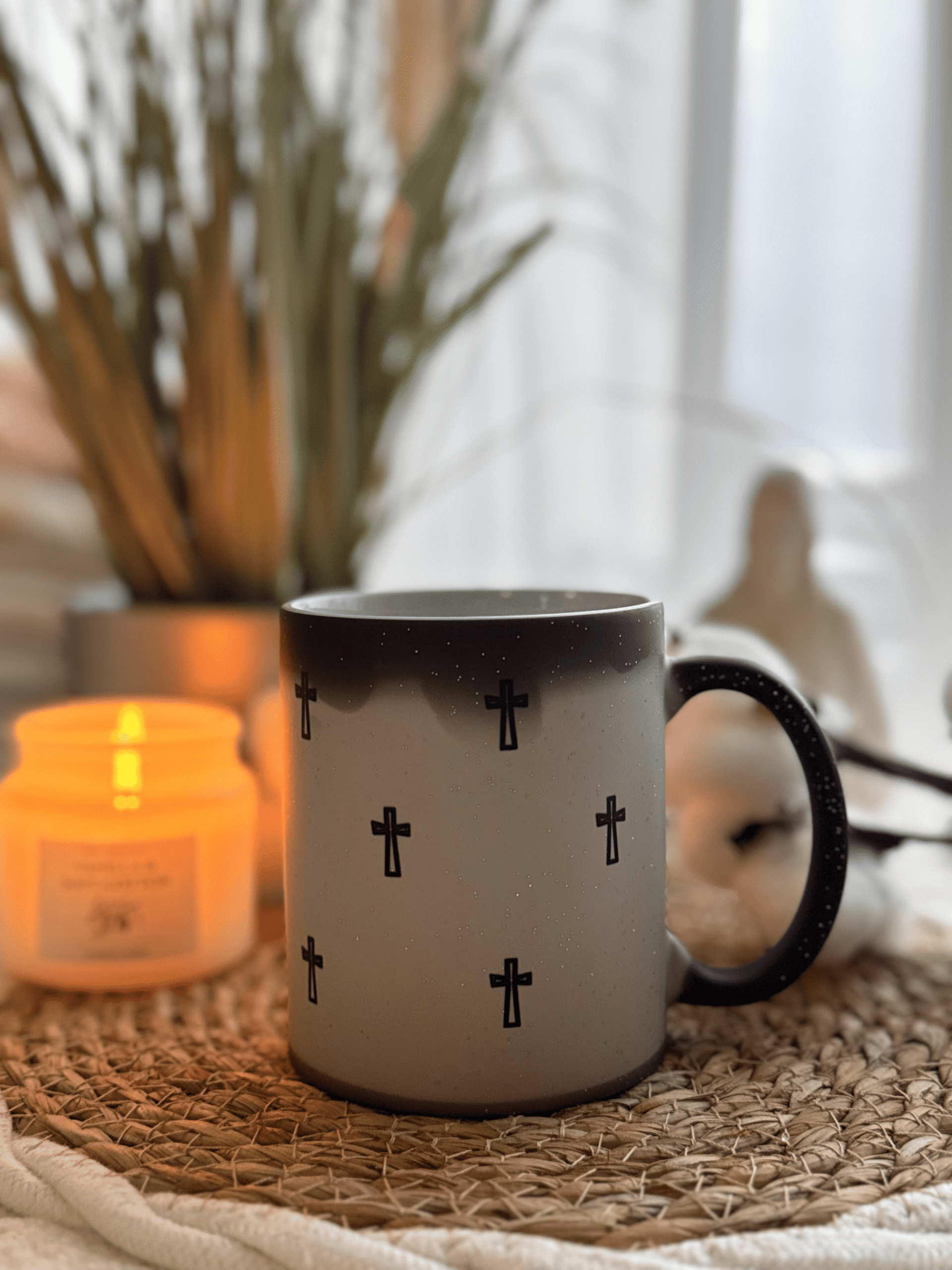 Wyjątkowy kubek inspirowany wiarą chrześcijańską. Czarne napisy „Boga się nie wstydzę” otoczone delikatnymi krzyżami symbolizują dumę z wiary i odwagę jej wyznawania na co dzień. Prosty, a zarazem mocny przekaz sprawia, że kubek idealnie nadaje się zarówno do porannej kawy, jak i jako inspirujący prezent dla osób, które chcą z dumą pokazywać swoją relację z Bogiem.